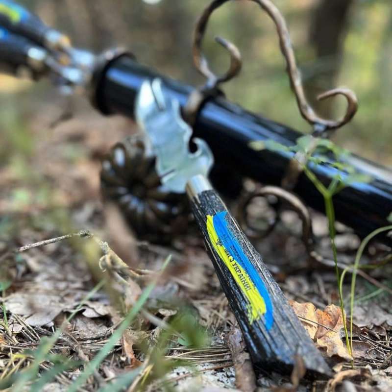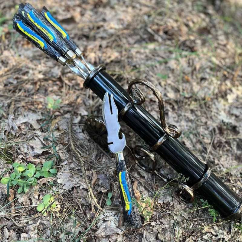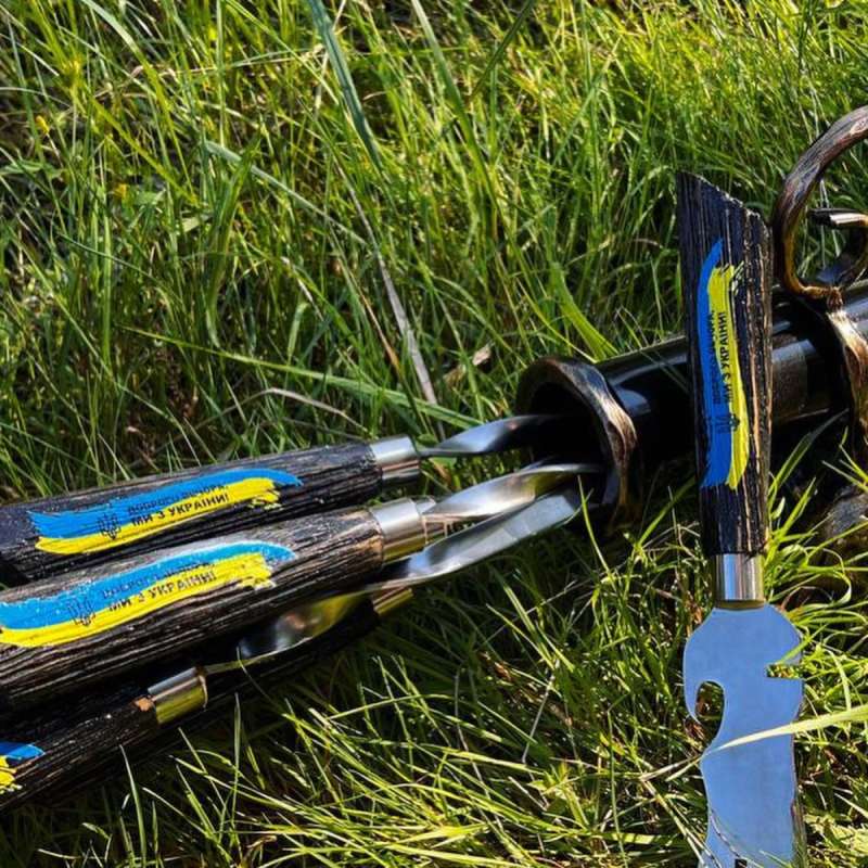 Набір шампурів та виделки-ножа з нержавіючої харчової сталі з ексклюзивним надписом на ручках «Доброго вечора, ми з України».