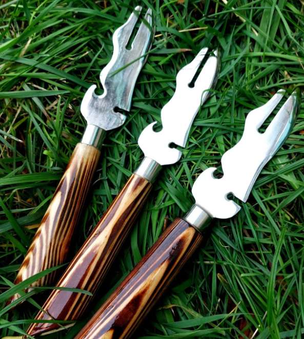 Вилка-ніж ідеально підходить для того, щоб перевірити готовність шашлику та щоб зняти його з шампура!