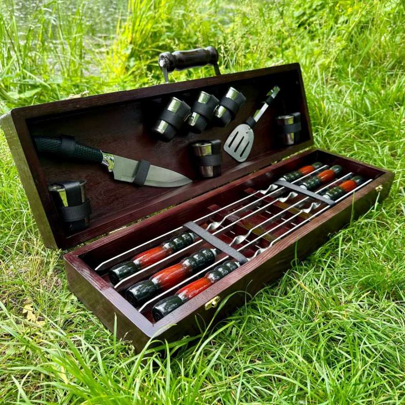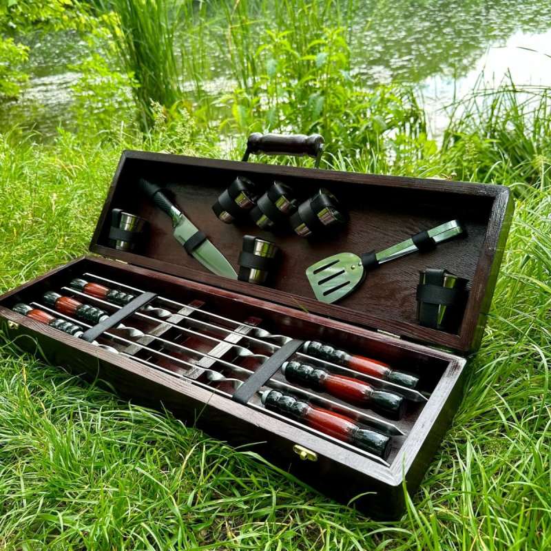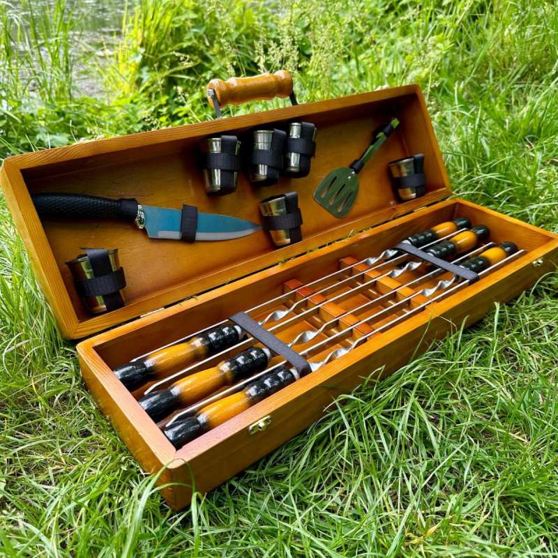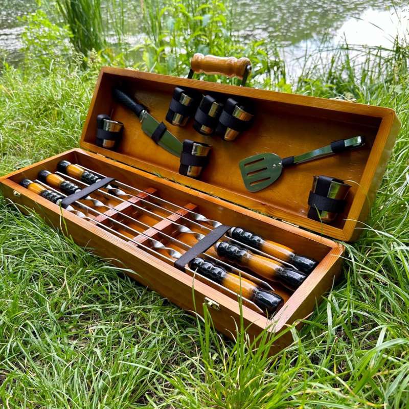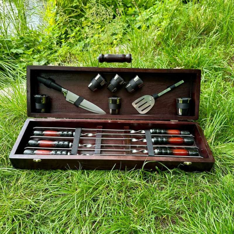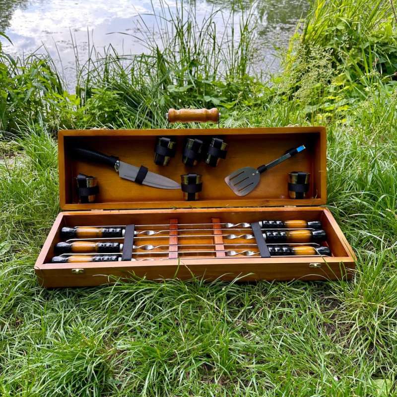 Набір шампурів у дерев'яному кейсі з 14 предметів