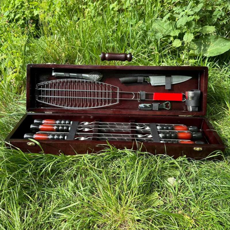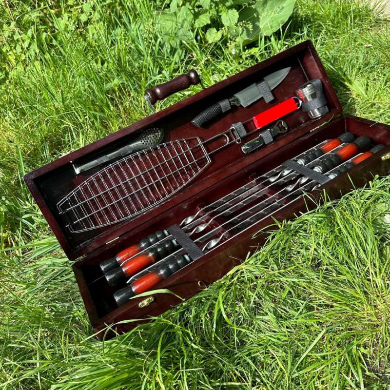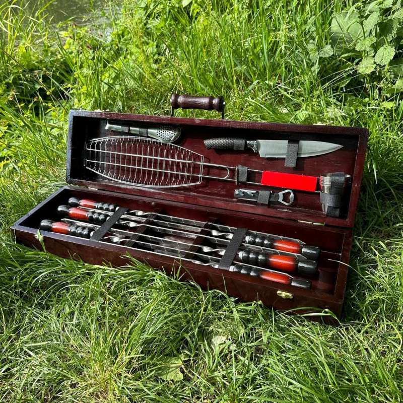 Набір шампурів у дерев'яному кейсі з 16 предметів