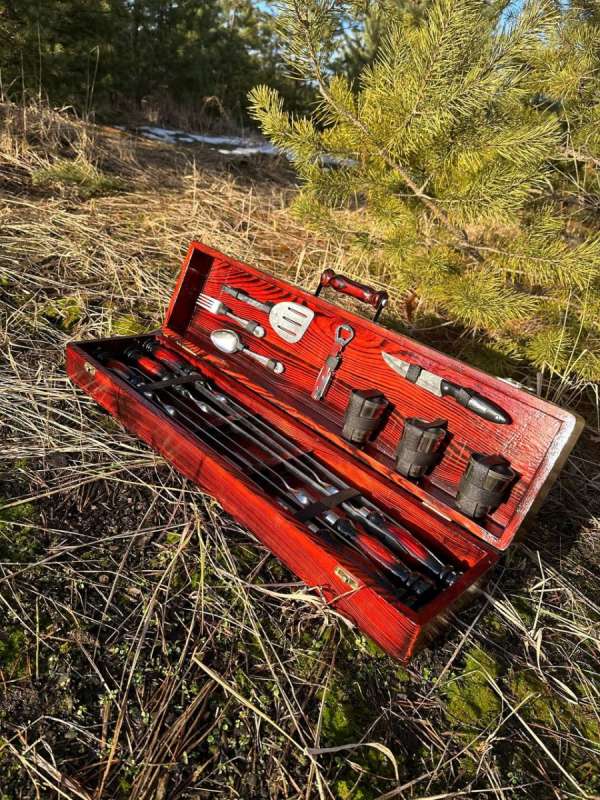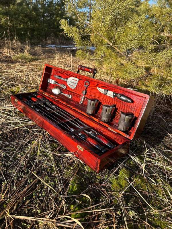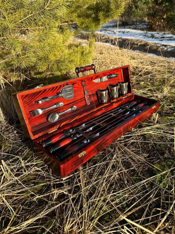 Набір шампурів у дерев'яному кейсі з 27 предметів