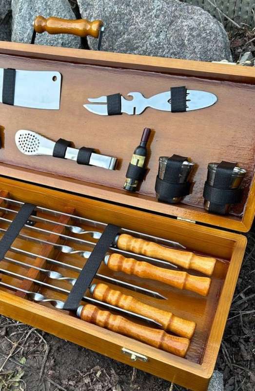 Набір шампурів у дерев'яному кейсі з 21 предмета