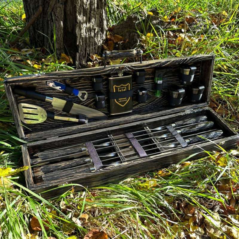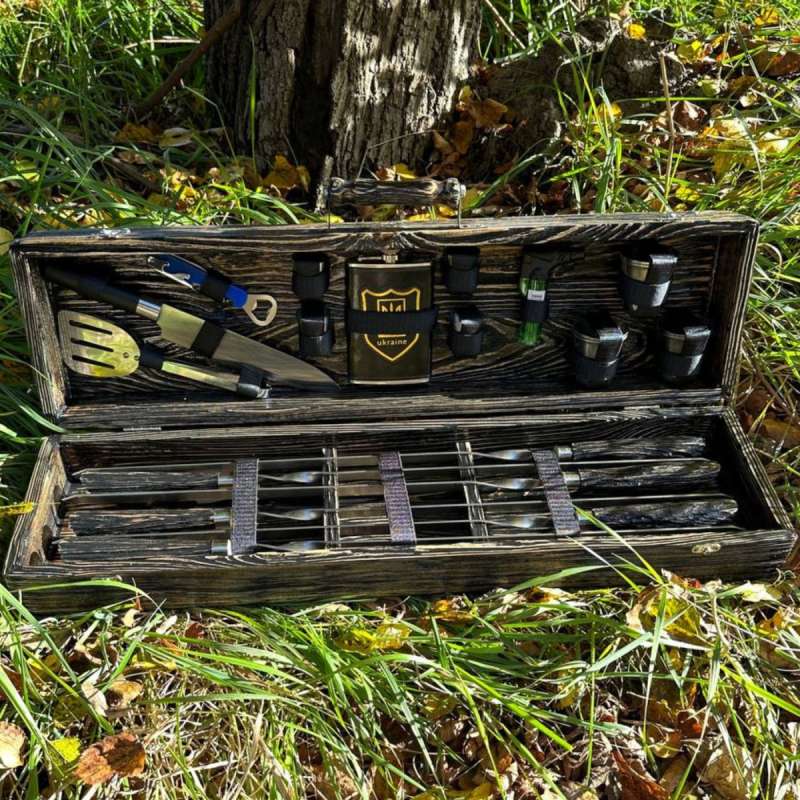 Дерев‘яний кейс в зеленому кольорі, до якого входить: