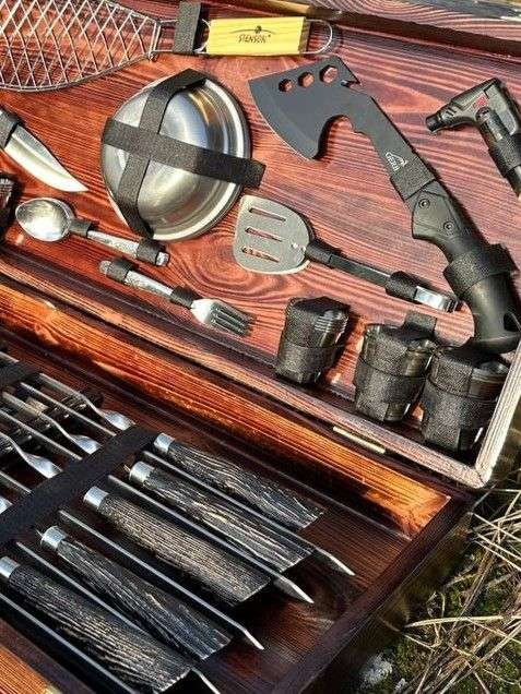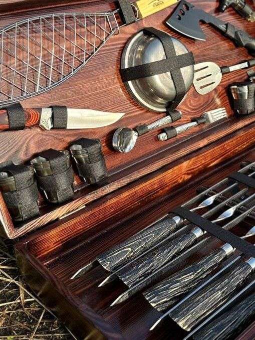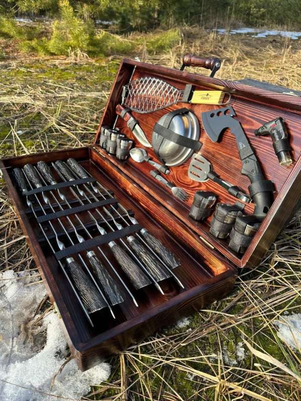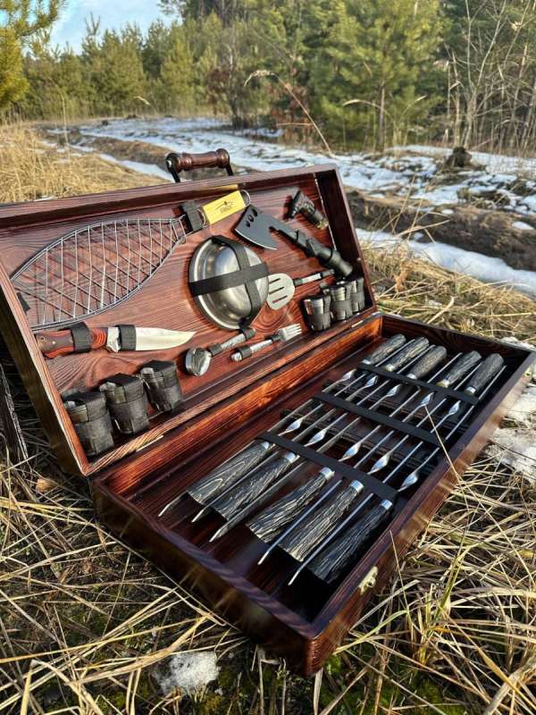 Набір шампурів у дерев'яному кейсі з 65 предметів